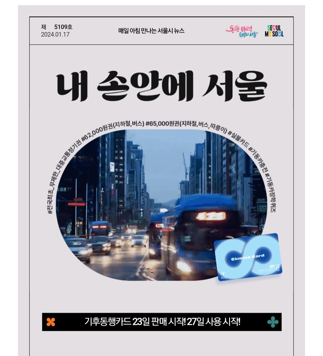 대중교통 무제한 이용 '기후동행카드'가 2024년 1월 27일 출시된다.