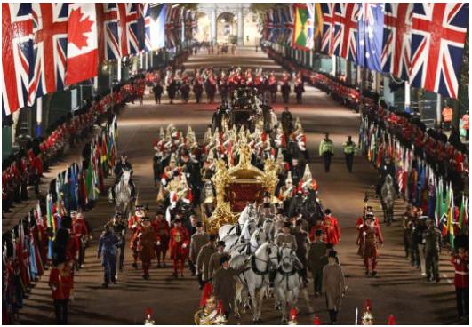 대관식을 사흘 앞둔 3일 새벽 국왕 마차가 런던 거리를 이동하는 ‘왕의 행렬’ 예행연습이 진행됐다고 영국 일간 텔레그래프가 전했다. 보도에 따르면 수천 명의 병사들이 이날 오전 0시를 조금 넘어 버킹엄궁에서부터 행진을 시작해 트래펄가 광장, 다우닝가 등을 거쳐 웨스트민스터 사원까지 이동했다.