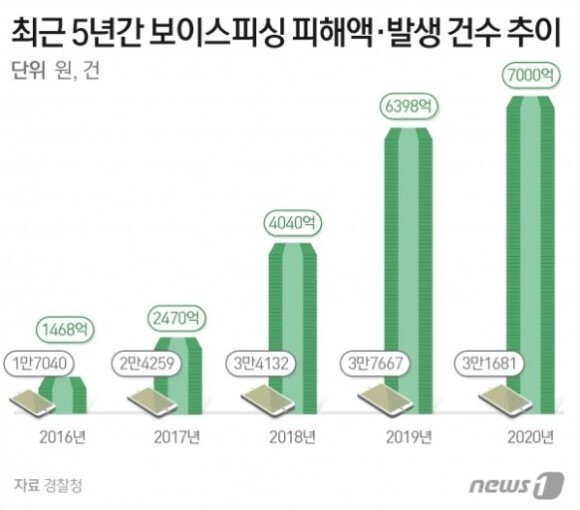 최근 5년간 보이스피싱 으로 인한 피해자가 17만 명이 넘고