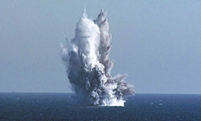 조선중앙통신에 따르면 북한은 지난 21일 함경남도 이원군 해안에서 수중핵무기를 실험했다. 통신은 수중핵무기가 “동해에 설정된 타원 및 ‘8′자형 침로를 80∼150의 깊이로 59시간 12분간 잠항(潛航)해 23일 오후 적 항구를 가상한 홍원만 수역의 목표점에 도달했으며 시험용 전투부가 수중 폭발했다”고 보도했다.